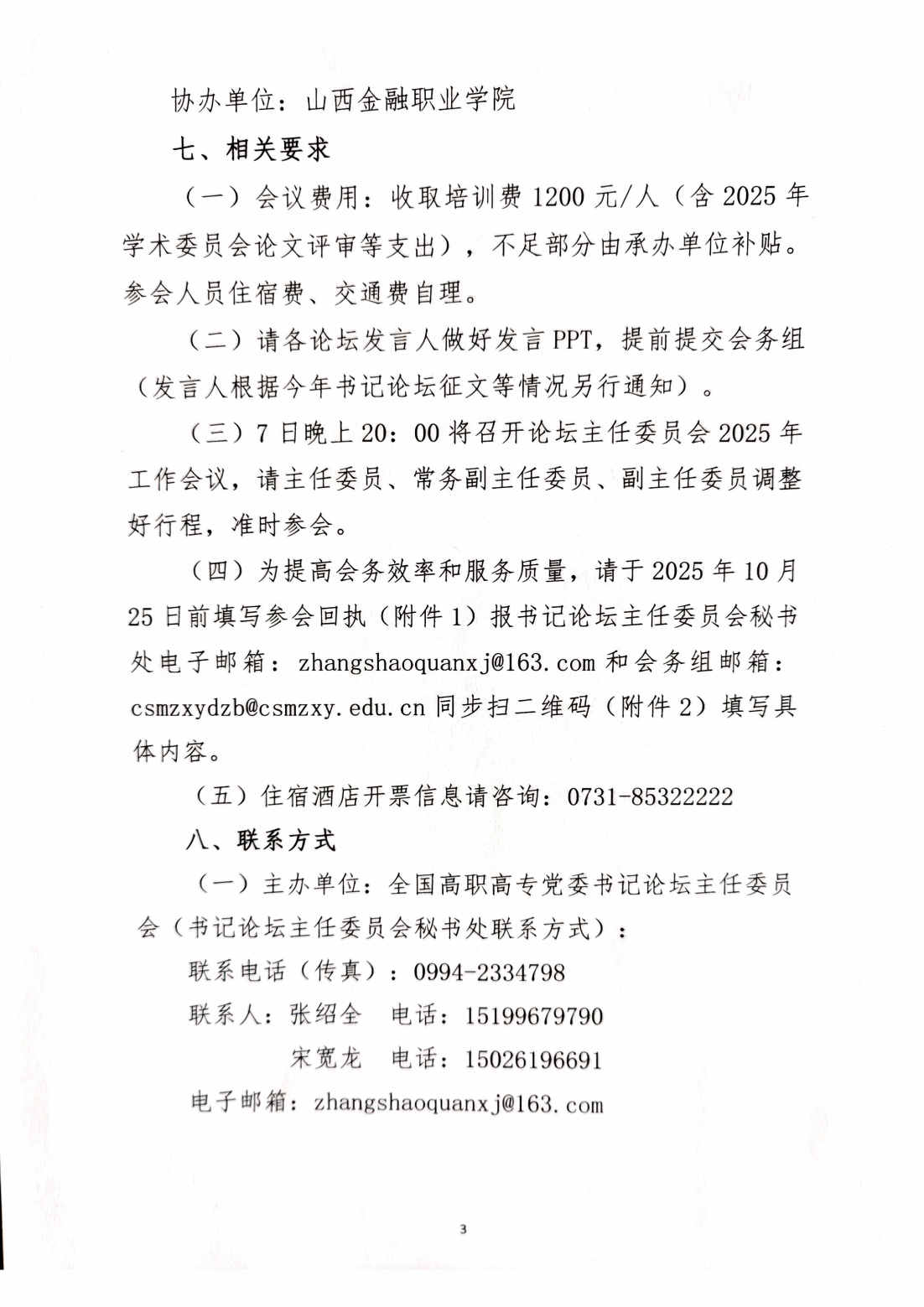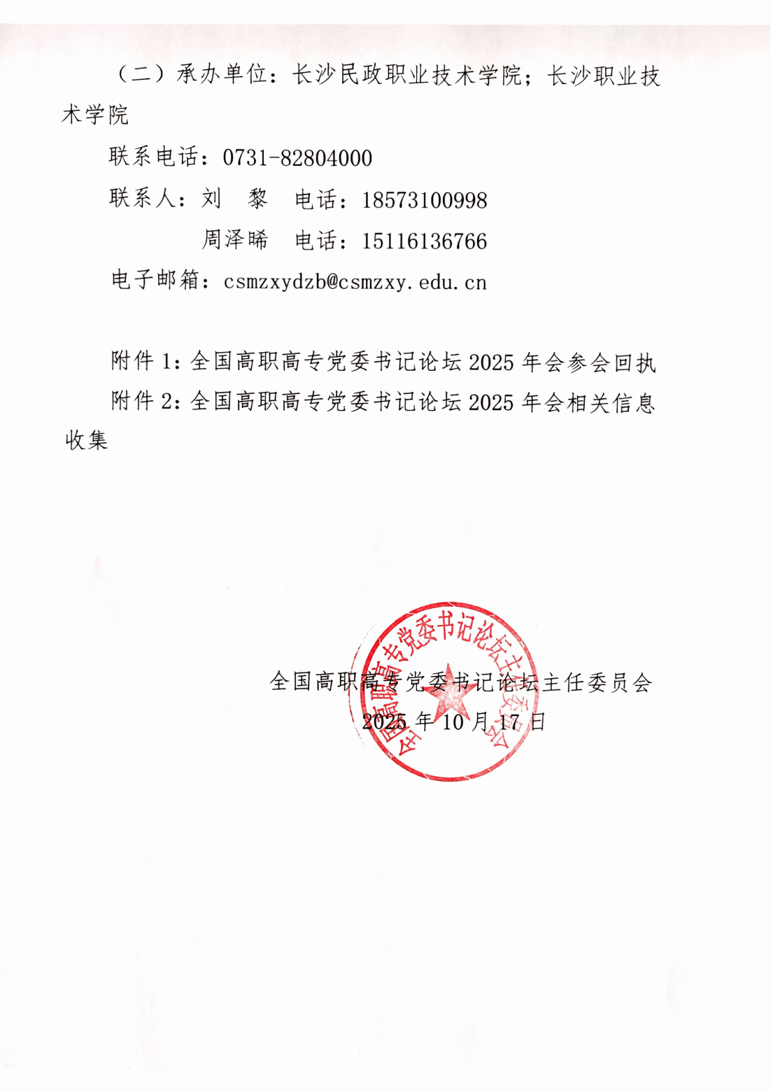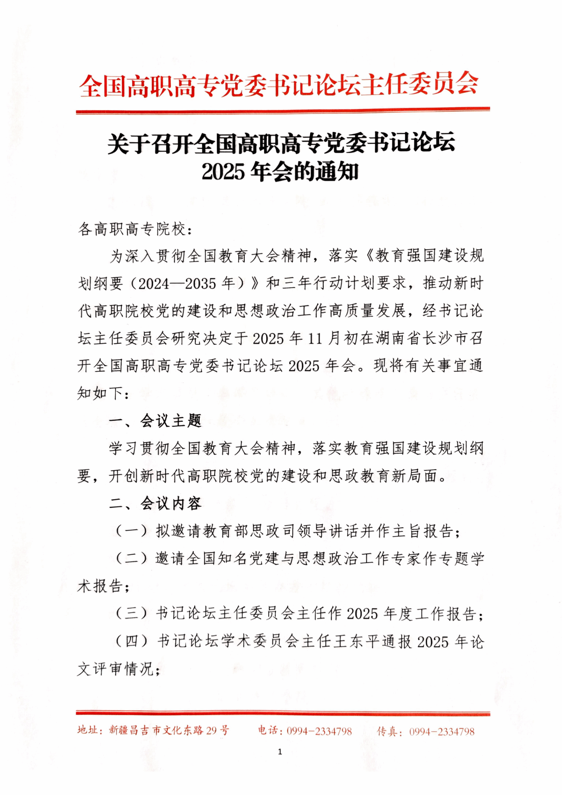 关于召开全国高职高专党委书记论坛2025年会的通知