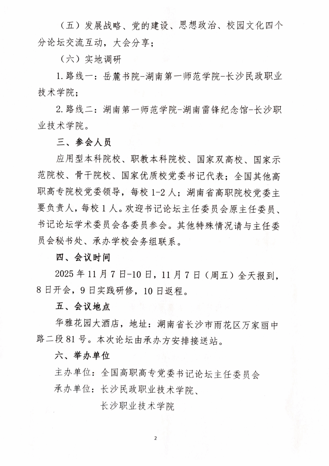 关于召开全国高职高专党委书记论坛2025年会的通知